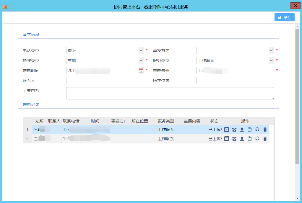 7、非接口调用式开发:在协同管控平台--应急调度平台基础上,建立呼叫中心系统,保证应急平台与呼叫中心能够实时互动,且具有离线客户端功能