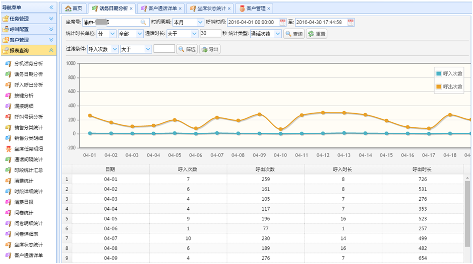 安装了八百呼的固定电话,企业可根据通话记录,分机话务、工作日志、通话时长等统计结果以表格、柱形图等形式加以分析,为企业管理提供决策依据。