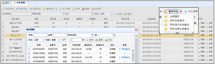 应用亮点: 电话外呼:客户资源导入数据库分配外呼任务,通过呼叫中心系统平台对于客户进行自动外呼,座席可直接点击下一个(或按F12键)代替人工拨号,或系统自动拨号过滤无效号码,座席只负责接听,根据接通的时间再发送条短信。未接电话可指定时间重呼,最大程度节约人力成本,提高工作效率。